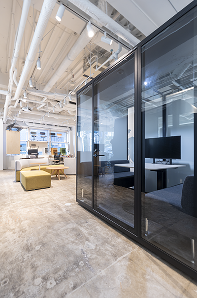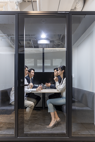 導入後は、周囲の声を気にせず集中できる会話空間が社内に。
