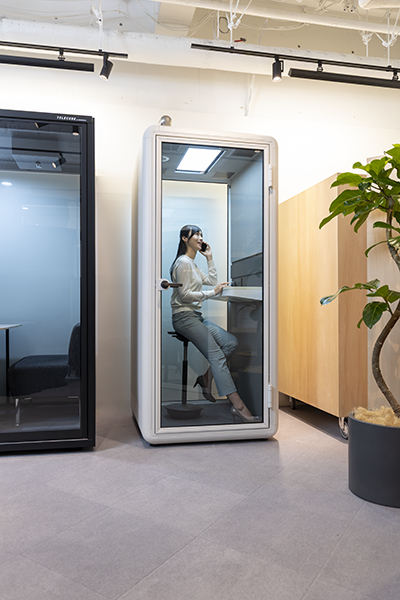 省スペースで設置でき、大掛かりなレイアウト変更も不要。 さらに、防音性が非常に高いため、デリケートな内容であっても周囲を気にせずプライバシーを確保して話すことができます。また、広い会議室を一人で占領する後ろめたさからも解放されることから、導入を決定しました。 社員からも「気軽に利用できる」「集中できる環境で快適」と非常に好評で、導入以来利用頻度は高く、予約が取れないこともあるほどです。