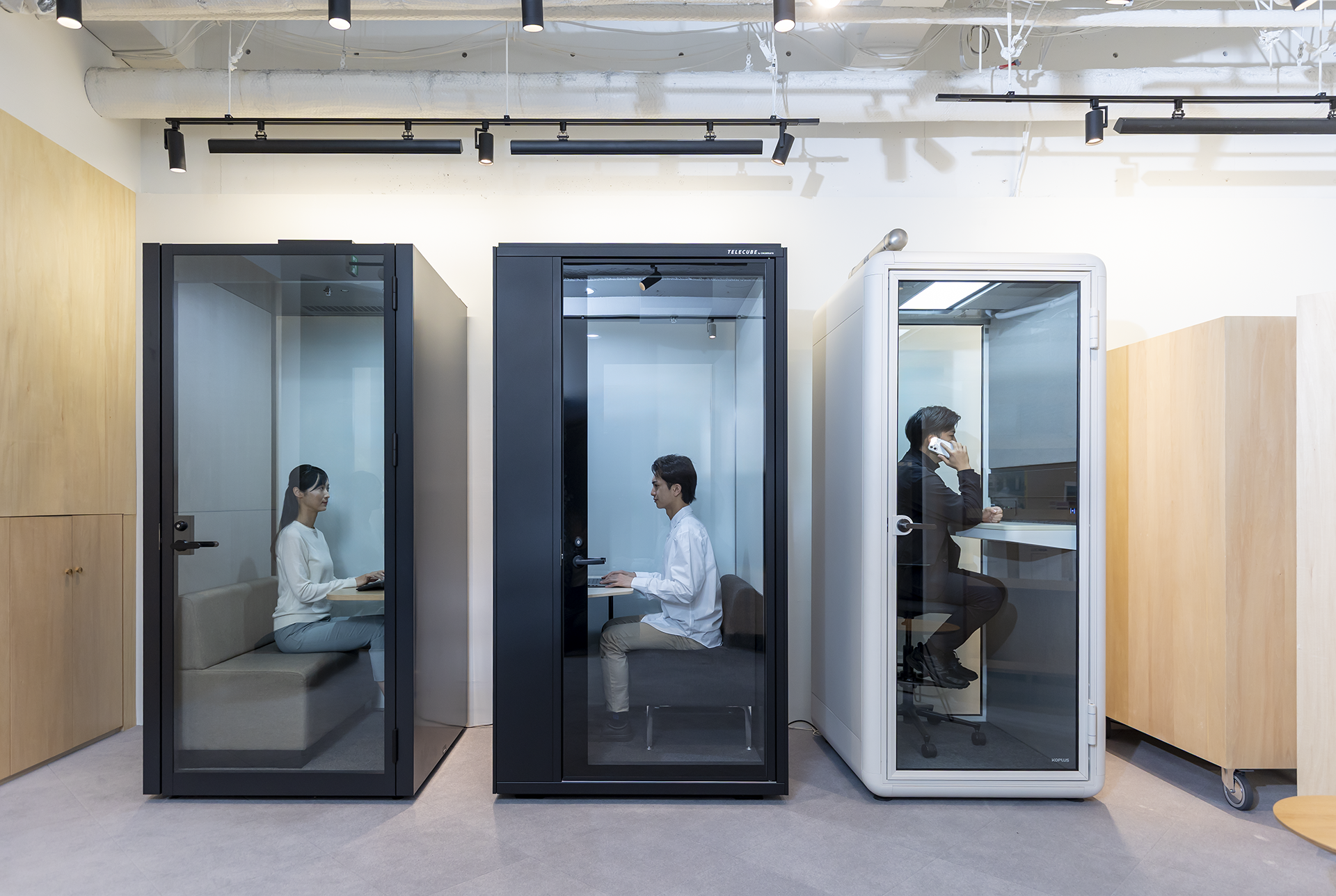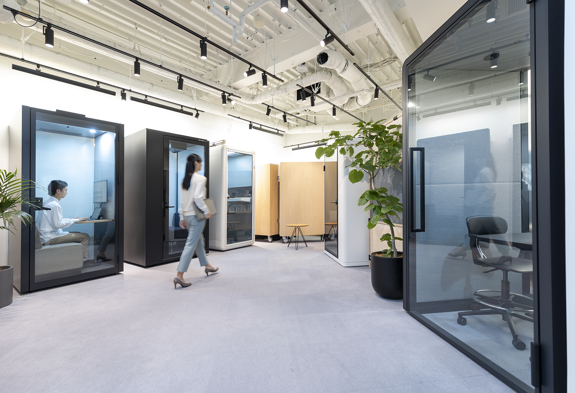導入後は、周囲の声を気にせず集中できる会話空間が社内に。