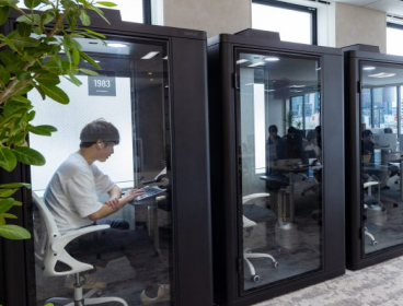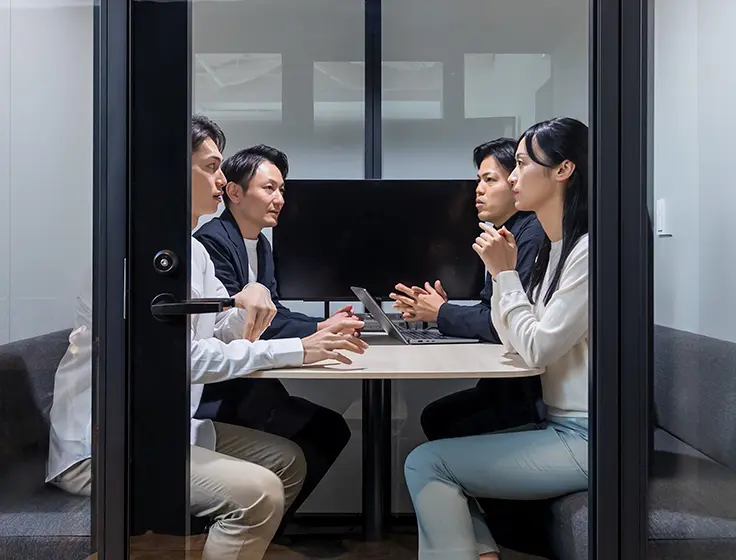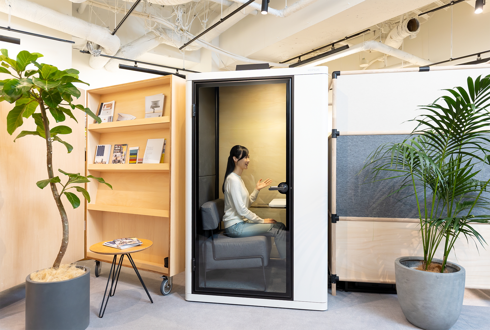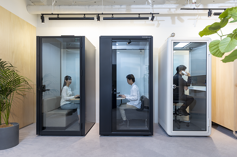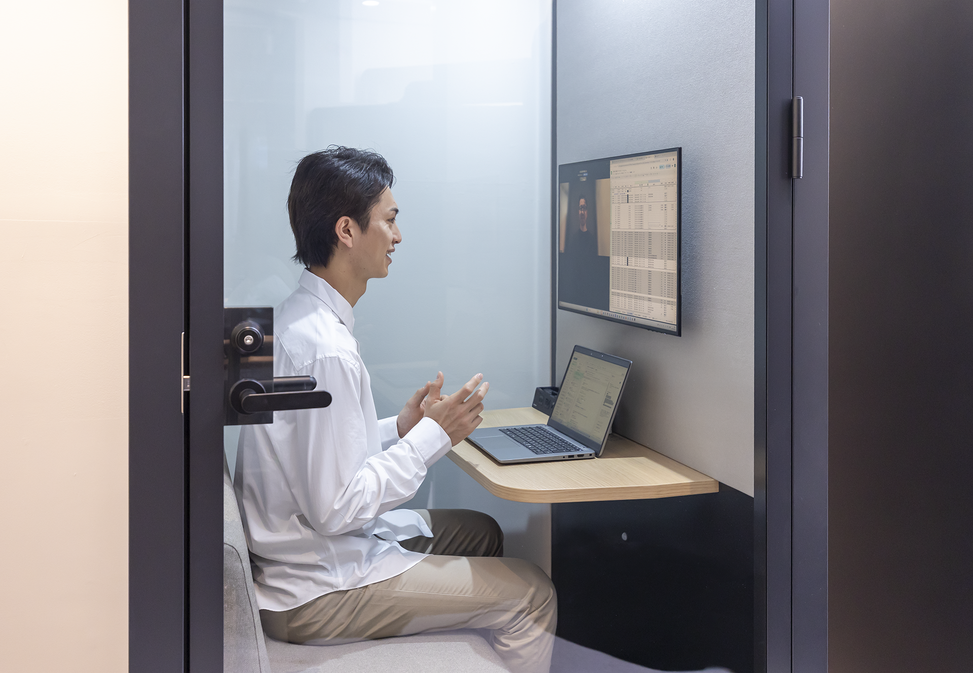 省スペースで設置でき、大掛かりなレイアウト変更も不要。 さらに、防音性が非常に高いため、デリケートな内容であっても周囲を気にせずプライバシーを確保して話すことができます。また、広い会議室を一人で占領する後ろめたさからも解放されることから、導入を決定しました。 社員からも「気軽に利用できる」「集中できる環境で快適」と非常に好評で、導入以来利用頻度は高く、予約が取れないこともあるほどです。